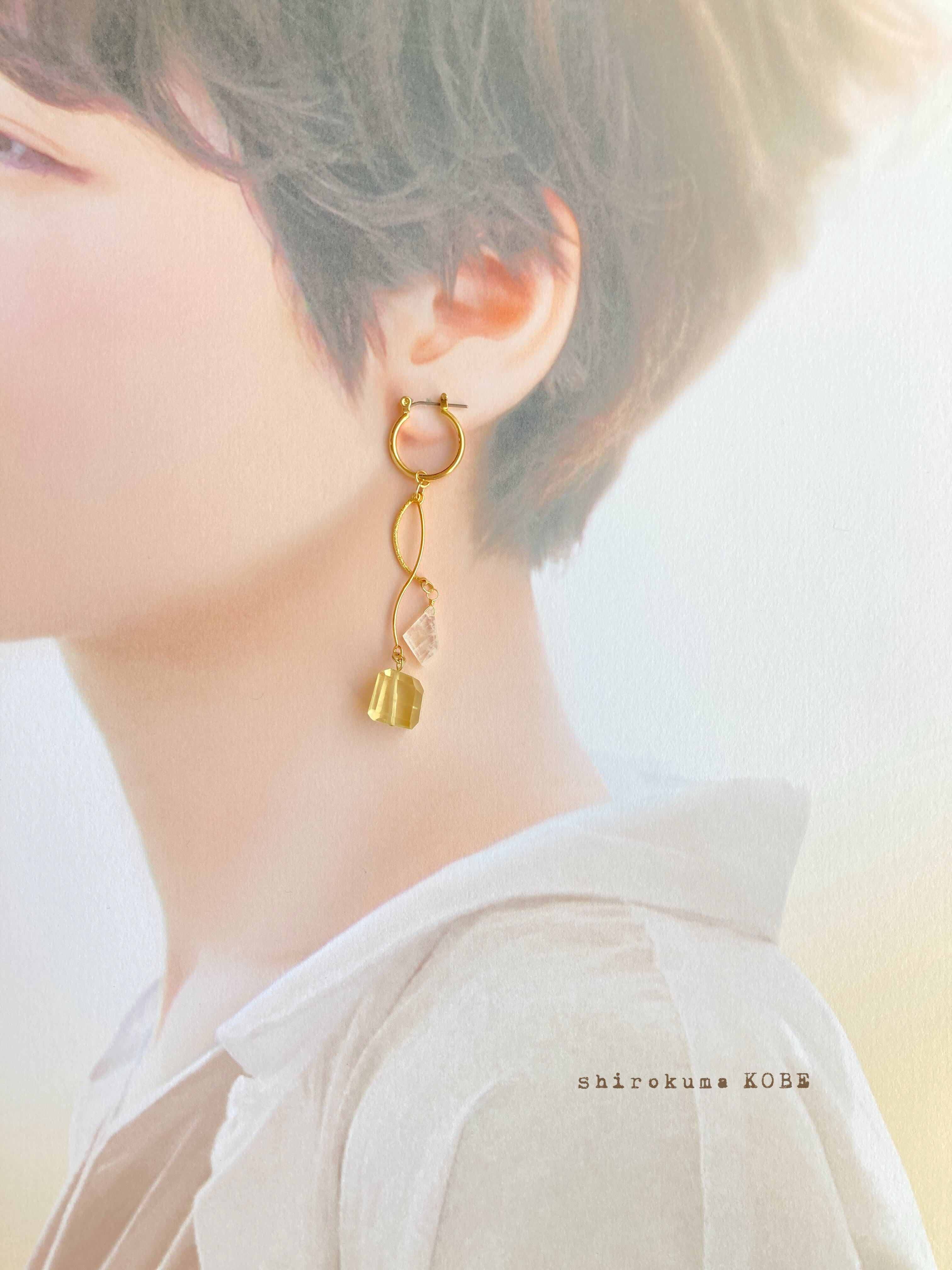 レモンクォーツとムーンストーンのピアス